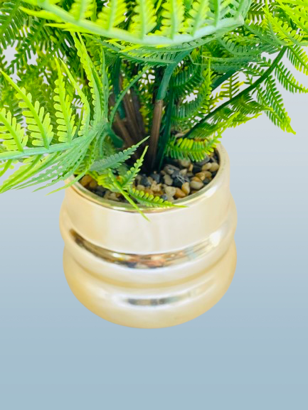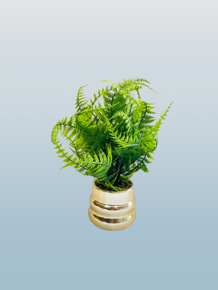 Artificial Fern Plant in Golden Decorative Pot
