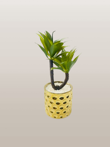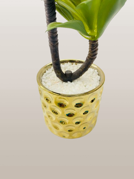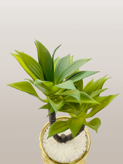 Artificial Green Plant with Golden Decorative Pot