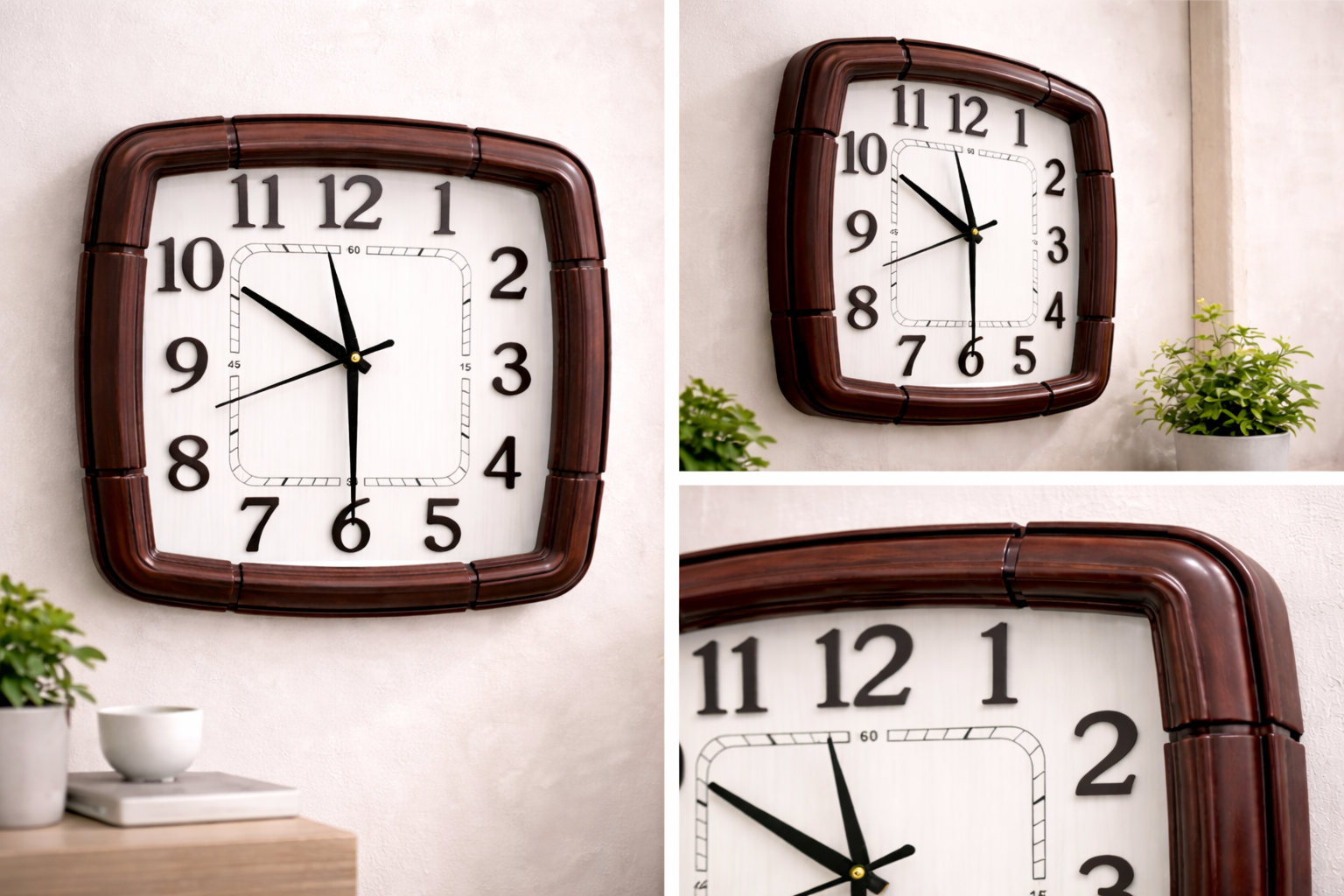 Apne ghar ya office ko dijiye ek timeless aur elegant look is premium square wall clock ke saath. Rich wooden finish frame aur bold raised numbers isse ek classy aur royal touch dete hain.