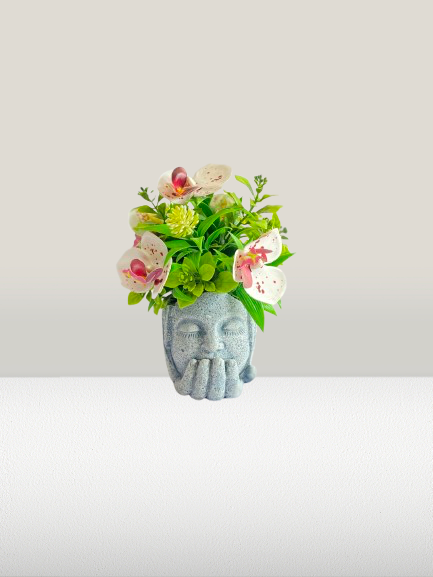 Elegant Face Planter with Artificial Flowers – Modern Home Décor