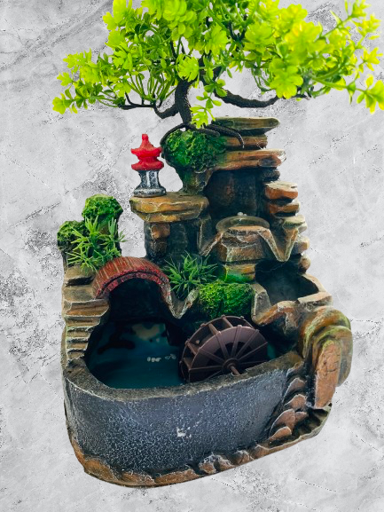 Mini Garden Waterfall Fountain with Tree & Water Wheel – Premium Tabletop Décor