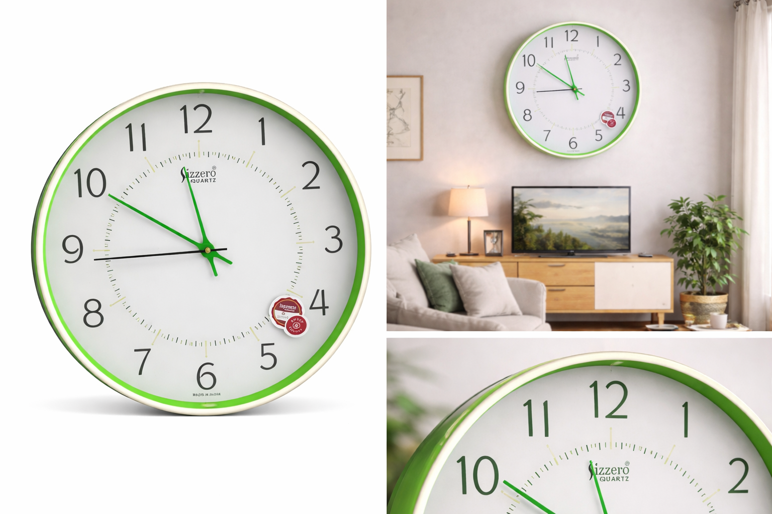 Apne workspace ya bedroom ko dijiye ek clean aur modern touch is stylish green rim wall clock ke saath. Compact size aur elegant design ke saath ye clock wall par perfectly balanced aur realistic look deta hai.