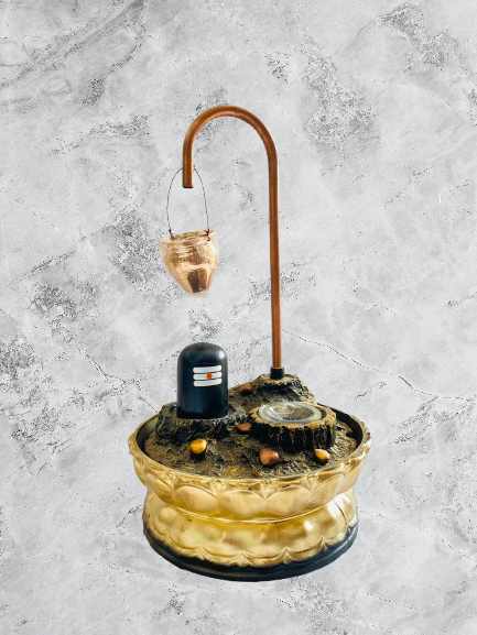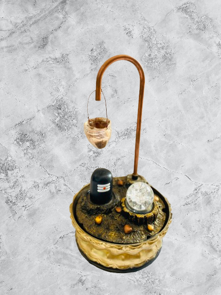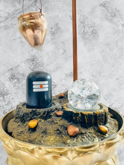 Iska unique design traditional Shivling style base, hanging kalash (matka) aur glowing crystal ball ke sath bana hai jo ek divine waterfall effect create karta hai. Flowing water ki soothing sound meditation aur pooja ke liye perfect environment banati hai